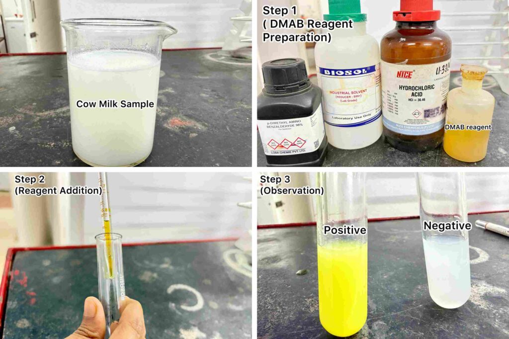 Here we take cow milk to test the adulteration.