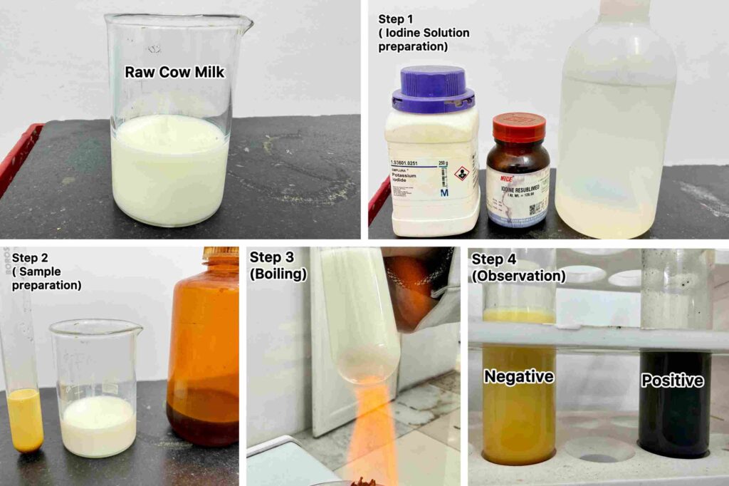 Milk is a vital component of the human diet, valued for its high nutritional content, including proteins, fats, vitamins, and minerals. Due to its widespread consumption, milk quality and purity are major public health concerns. However, milk is sometimes adulterated with substances such as starch like corn starch, wheat flour, rice flour, and arrowroot flour,potato starch etc. To