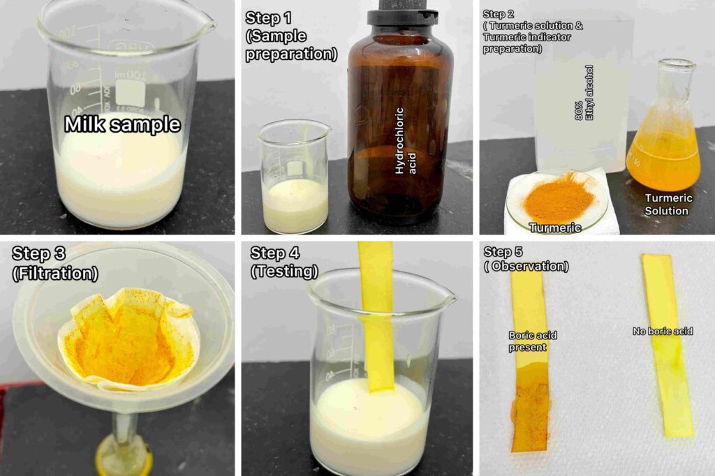 Borate testing in milk is an important quality control procedure used to detect the presence of boric acid or borax (sodium borate), which are sometimes illegally added as preservatives to extend milk’s shelf life. Although borates can prevent microbial growth and spoilage, they are toxic and harmful to human health when consumed regularly. Here detailed