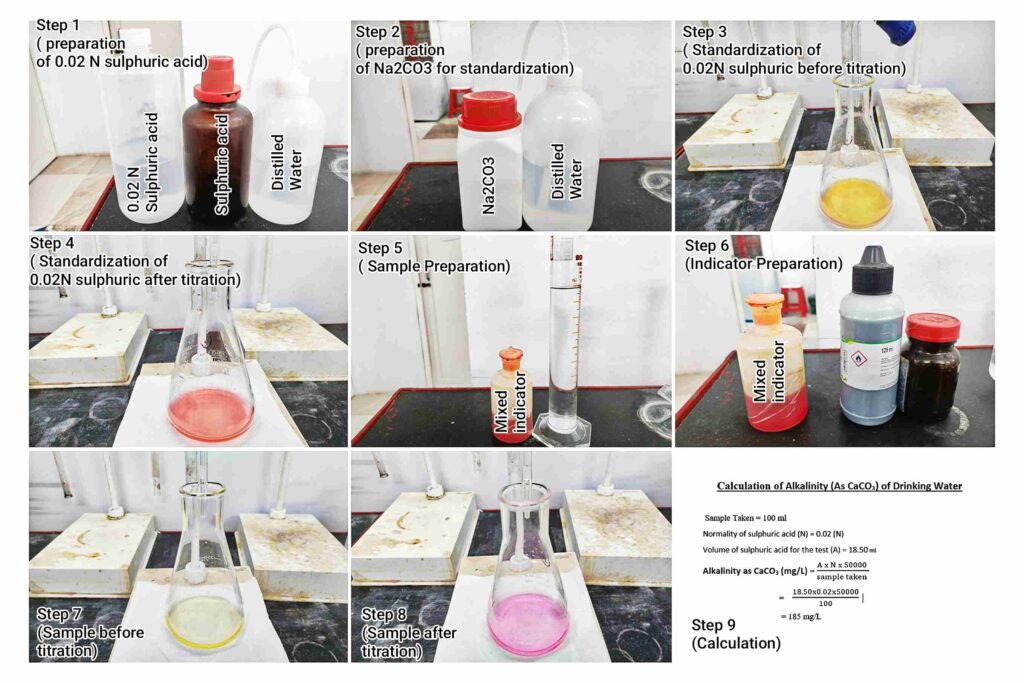 The alkalinity of drinking water represents its ability to neutralize acids and maintain stable pH levels, primarily due to the presence of bicarbonates, carbonates. It plays a critical role in ensuring water is non-corrosive, safe for consumption, and compatible with plumbing systems.Thus, alkalinity testing is essential for drinking water quality assurance, supporting both public health and infrastructure longevity.To perform the alkalinity as CaCO3 test at a water manufacturing company or laboratory should ensure by following standard procedures mentioned above to accurately determine the alkalinity as CaCO3 and assess the quality of the drinking water with availability of the apparatus & chemicals and also the above real-time photo attachment will help to understand the testing process completely. In addition, if expert guidance is needed ,please reach out to Pro Research & Testing Laboratory.